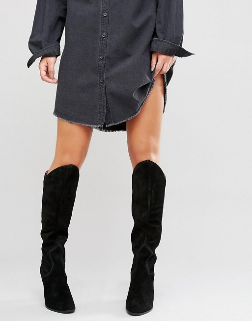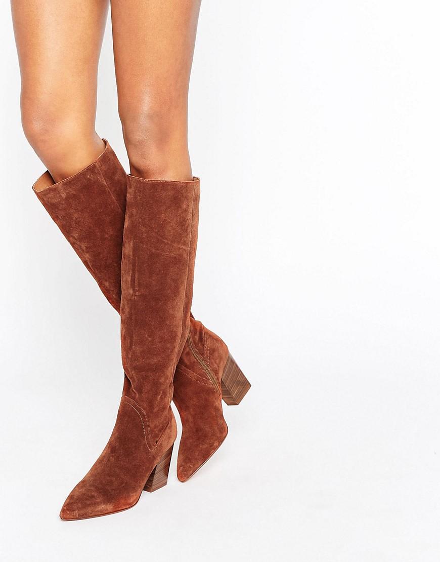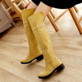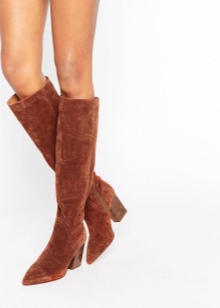 Velvety suede looks very feminine and elegant. Shoes made of this material can decorate a variety of women's dresses, but it is very capricious. Suede requires careful and regular care. These boots should not be worn in wet and slushy weather.