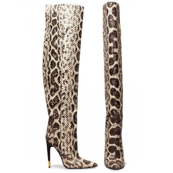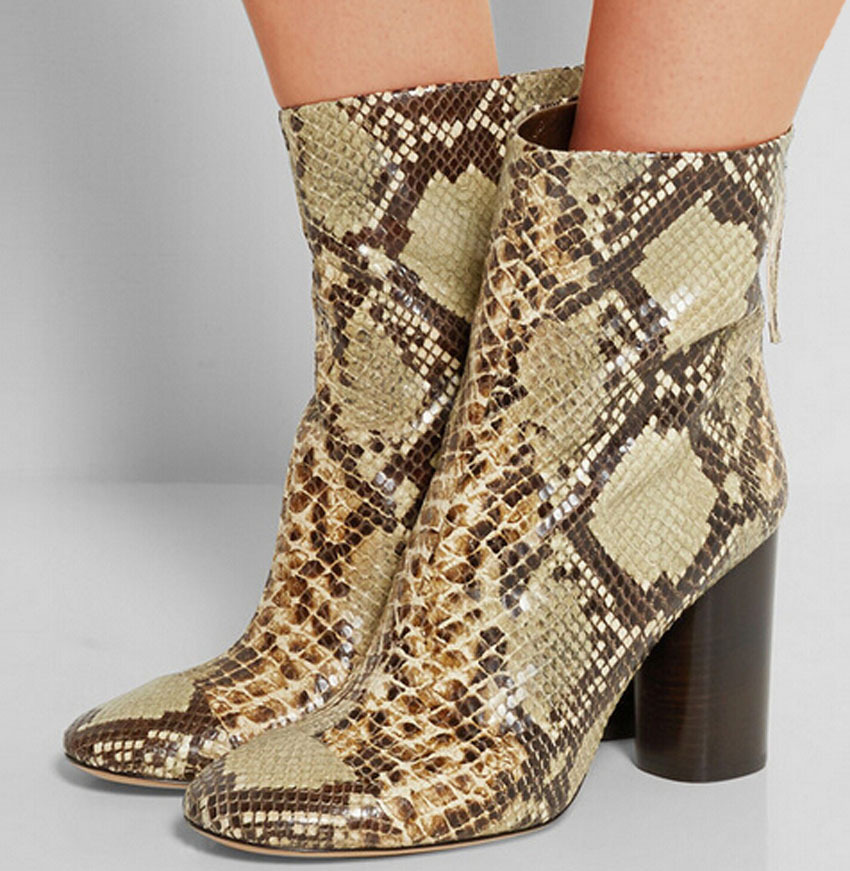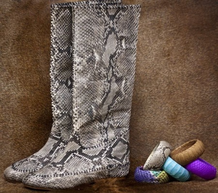 - Python leather boots are a versatile, effective and stylish product. Not every woman can afford such shoes, but if you still get them, then you are a bright personality who has a great sense of style.