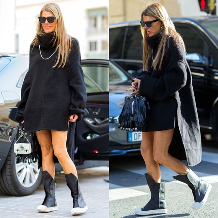 Choosing them for a dress is a rather bold move, but such a combination can be interesting, especially if there is a fitted dress made of knitwear or a balloon dress in your wardrobe. In any case, focus on the design of your shoes and take into account the relevance of a particular color solution.