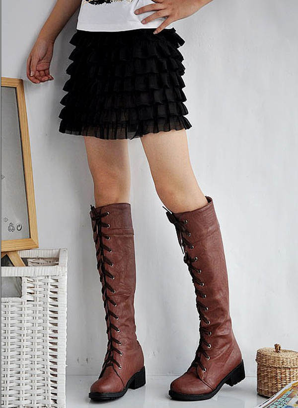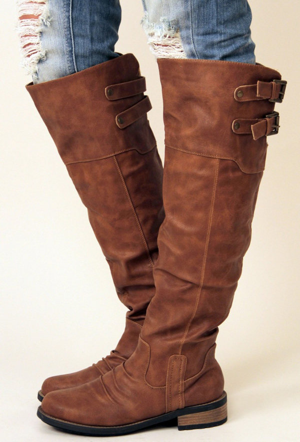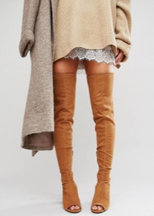 This type of shoe is characterized by wide, straight cuffs, which help to hide the shape of the calf in the event that they are not satisfied with the owner. They go well with short dresses and shorts. Boots with a wide top perfectly fit both in business style and casual.