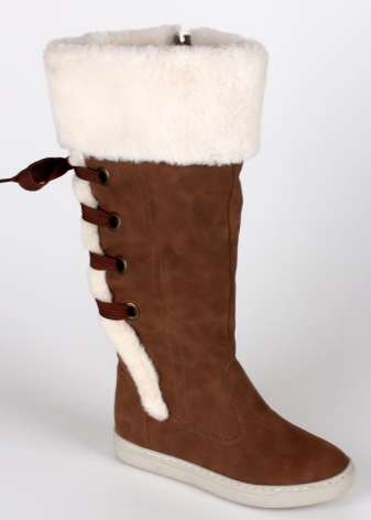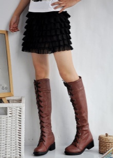 A number of advantages has brown shoes with a flat sole - it does not affect the gait, it is comfortable for the foot and suits any style of clothing. Warm, inflated boots and models with a tractor outsole are not ignored either. They perfectly complement the winter clothes in a sporty style - down jackets and jackets.