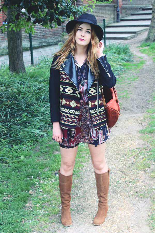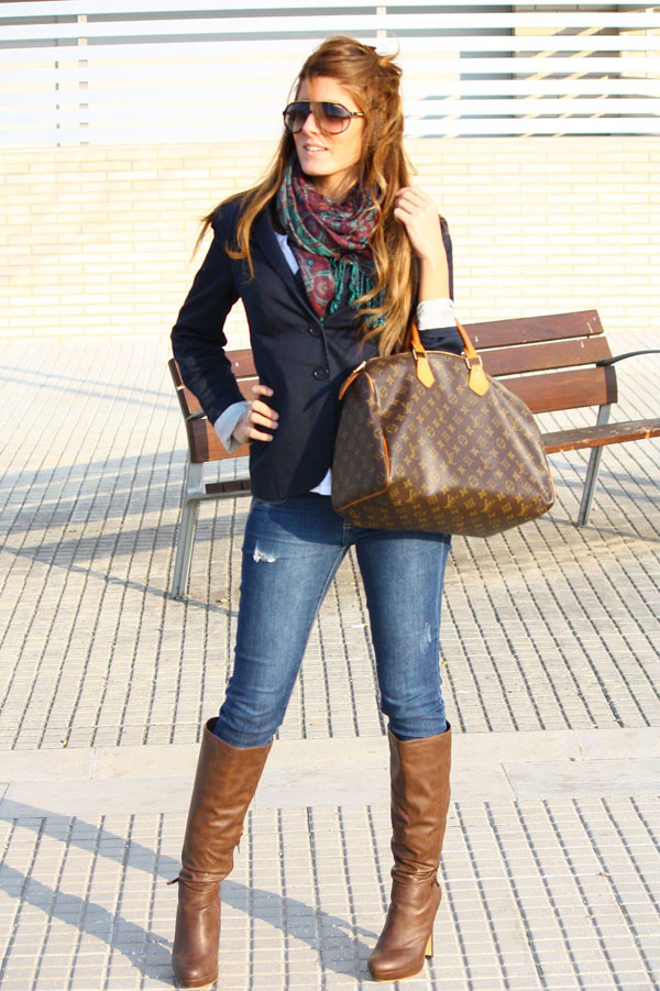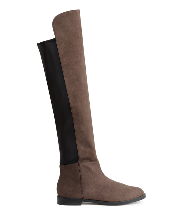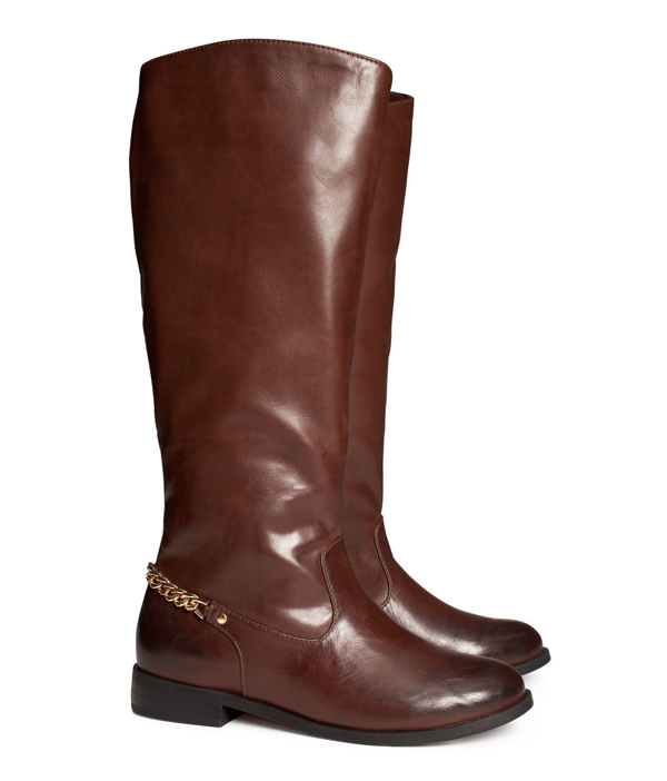 These seemingly so different elements of the decor look equally organically on brown boots, once again emphasizing their versatility.