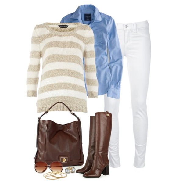 - Dark brown boots fit perfectly into a business image, especially if it is made in bright colors (light gray, beige and);