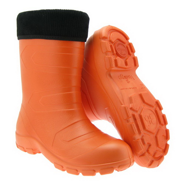 - The boots are light, the weight of these boots is almost 4 times lighter than the boots made of PVC. Ease gives the foam and porous structure, that is, the material is filled with small bubbles, it also gives it heat resistance and thanks to the same quality they can be worn in the heat and cold.