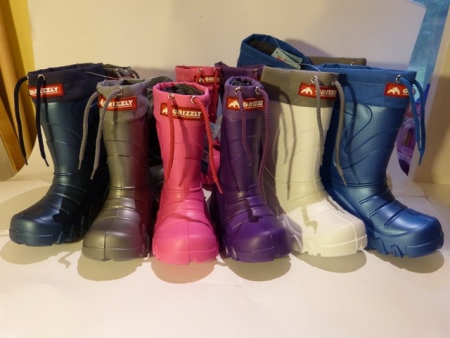 - Grizzly - with a cuff and a lace on top, suitable for slush, sleet at - / + 5-15 degrees, with a velcro for fixing the liner. Color range: green (metallic), red (coral), orange, silver, blue (silver), matt blue, sea wave, fuchsia, pink, white, lime, lilac. Dimensional grid: 22/23. 24/25, 26/27, 28/29, 30/31 /, 32 / 33,34 / 35