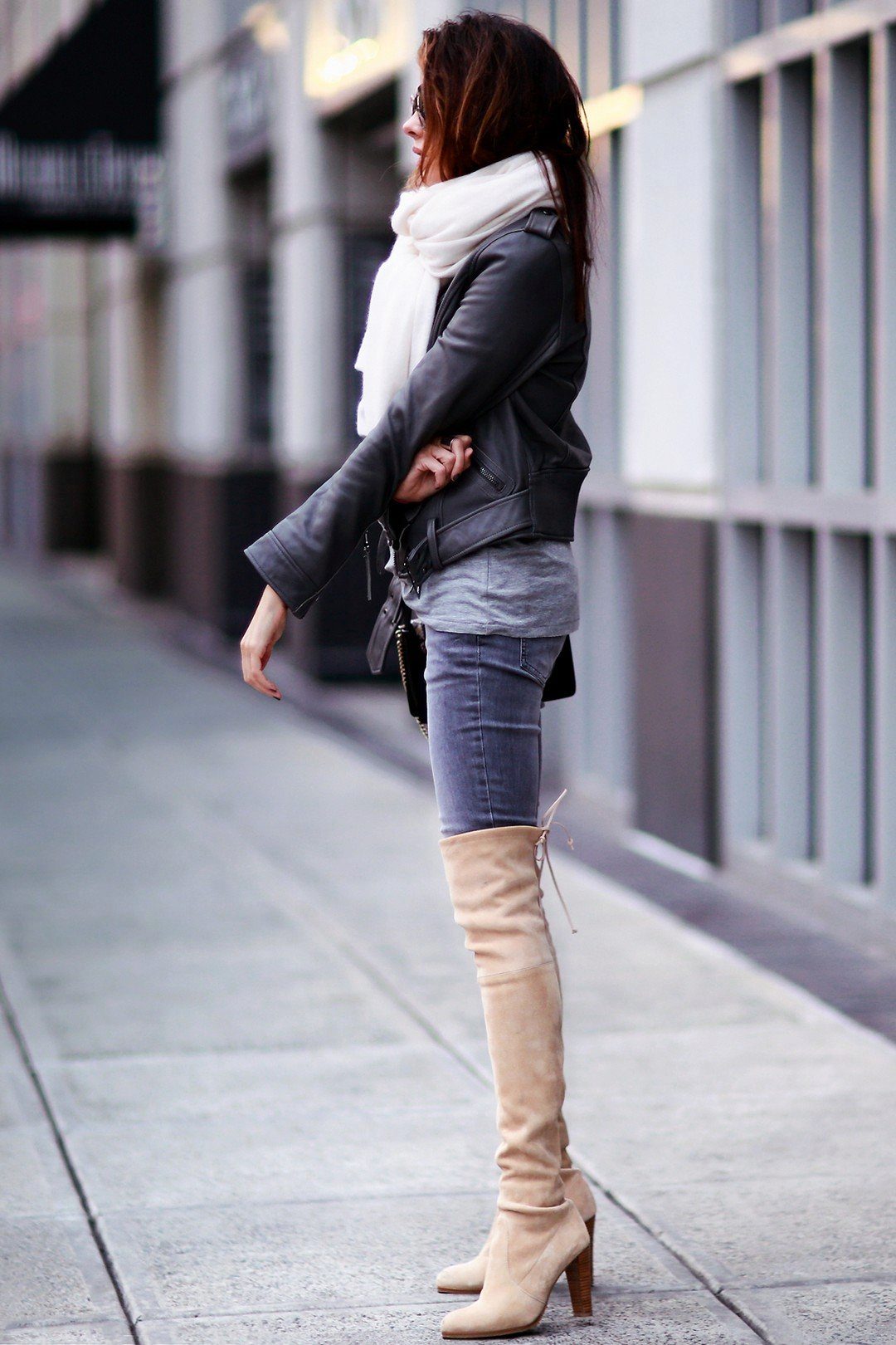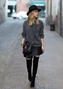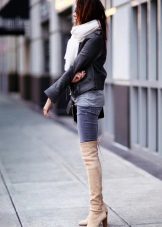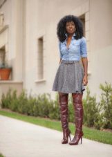Gray boots should be tall enough, made of matte smooth leather. Light shades of gray are relevant, which will be an excellent alternative to boring black boots.