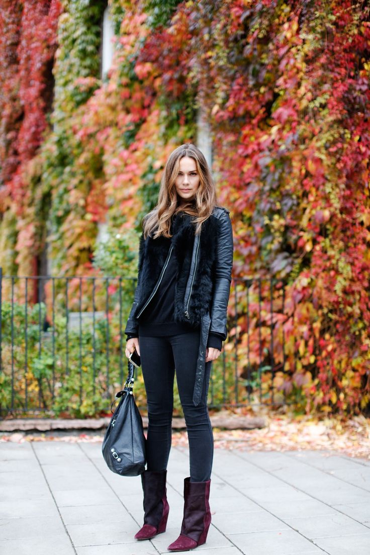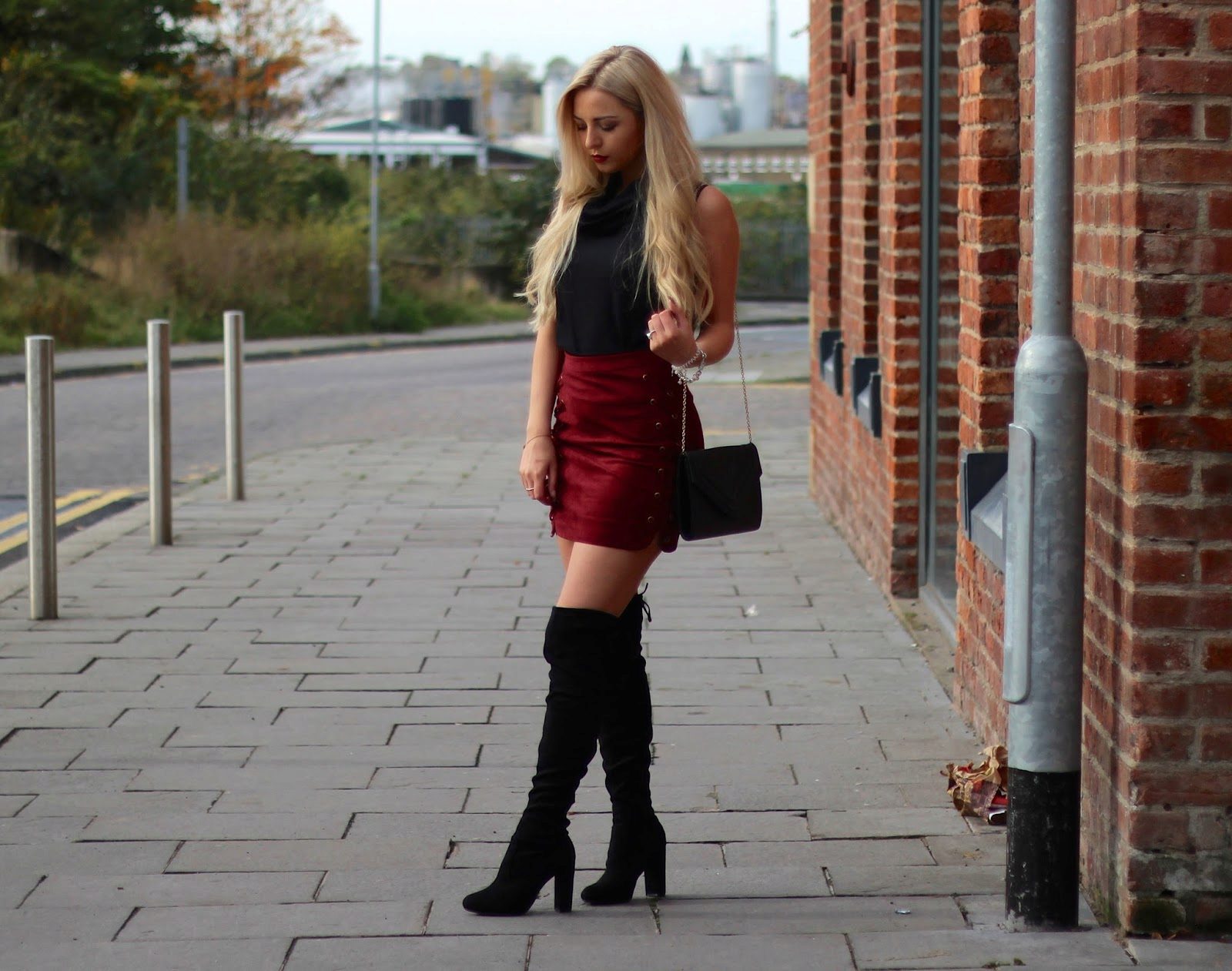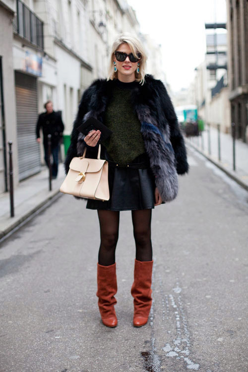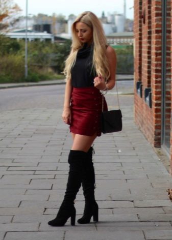 For a fashionable party, pick up stylish boots with an unusual print. Wear them with a wine pencil skirt, a blue blouse and a black lacquered jacket. In this way, you just will not go unnoticed!