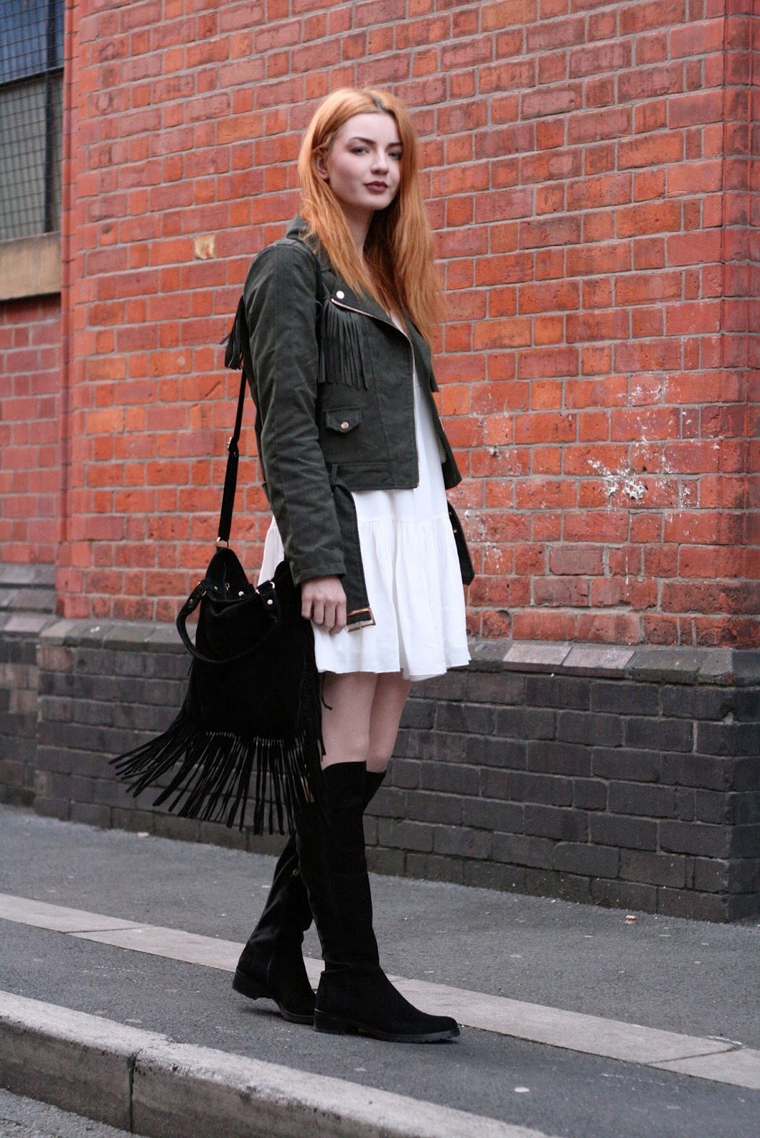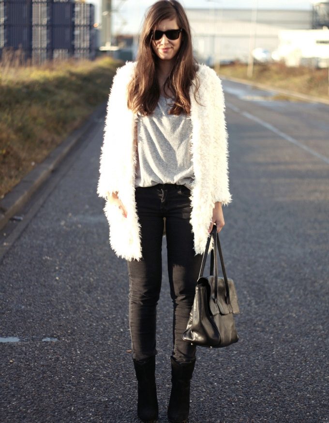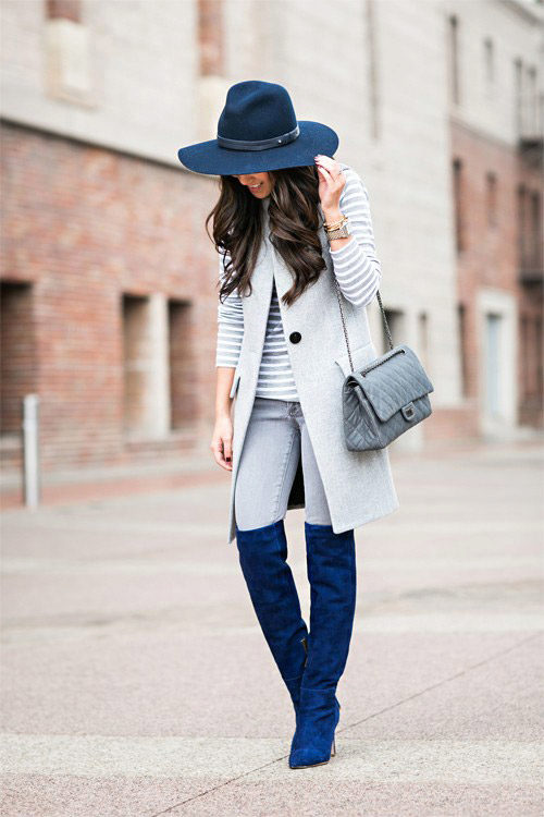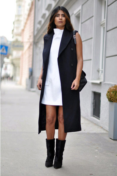 Go on a date? Prefer wedge boots or heels. Wear them with a short white dress and top off with a sleeveless coat. A small handbag on a long strap and a discreet make-up will complement the look.
