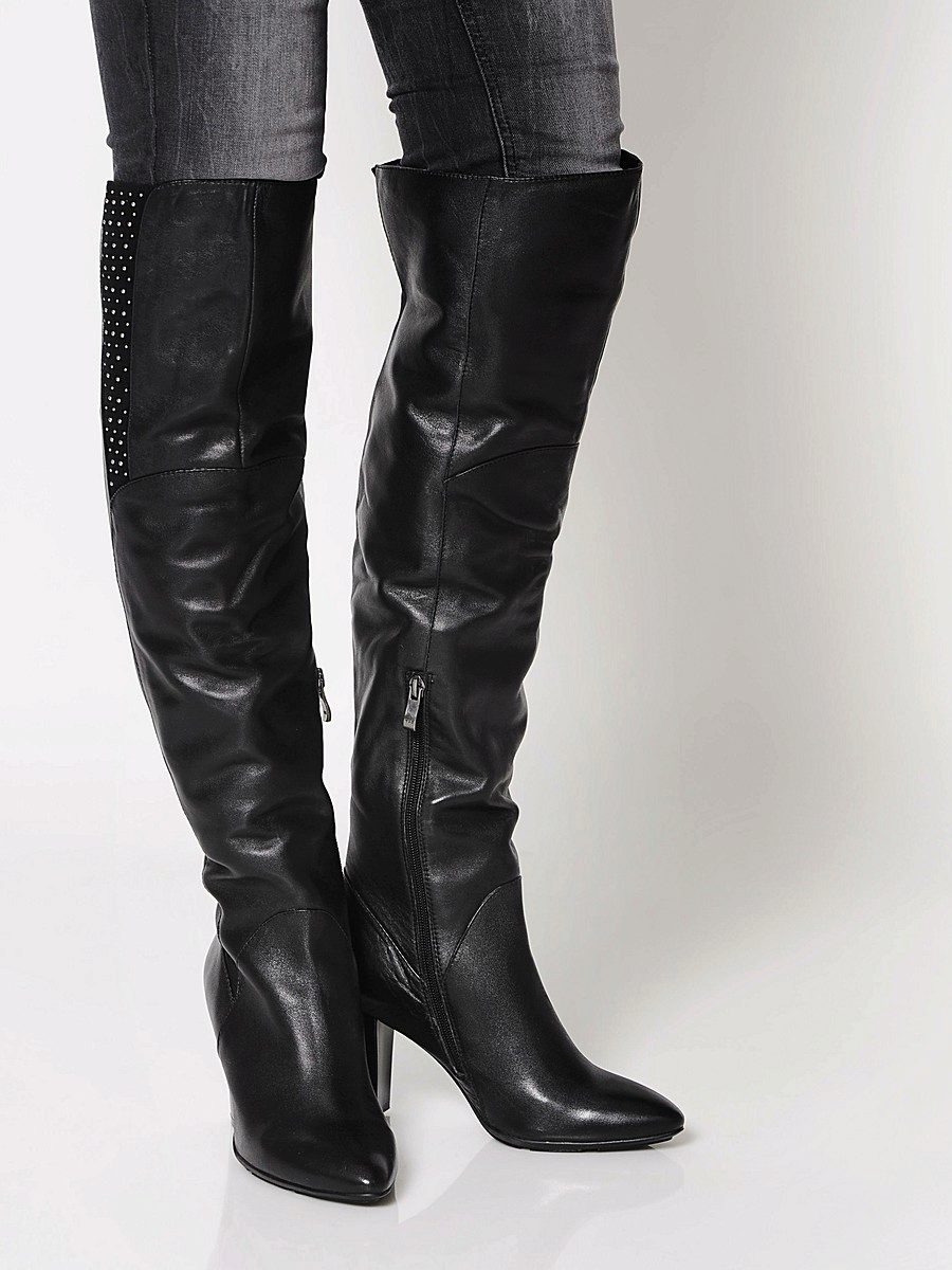 High boots lengthen legs and look very sexy, so they come back into fashion again and again with a certain frequency. Relevant models are flat and low-heeled rectangular shape. You can wear them with a variety of clothes, putting on a job, a date or using as casual shoes.
