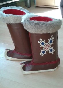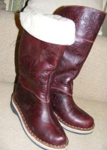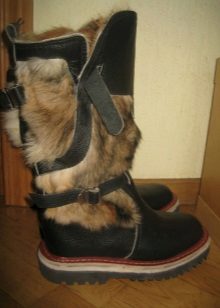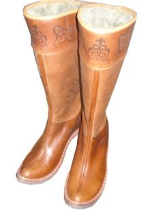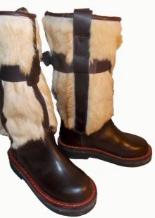 The range of Mongolian boots is presented today by adults (both male and female) and children's models. Traditionally, these are products with a high shaft; in some models, the height is adjusted due to the fact that you can turn away the top, getting a wide fur rim, which looks very impressive. Some models are equipped with side straps, which allows you to adjust the width of the tops, in addition, it protects the shoes from getting snow inside.