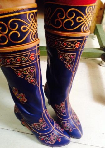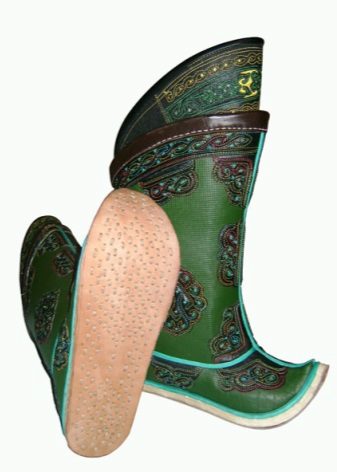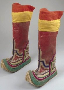 Traditionally, the Mongols made of natural yak leather, and insulated with dog fur from the inside. The shoes should have been as comfortable as possible for the rider: due to the thought-out height of the heel and the stiff heel, the foot did not tire of it all day long. A tucked sock was not only a beautiful detail, but also the necessary protection from the steppe sand. Mongolian boots were unusually warm shoes, because this was demanded by the climate of the inhabitants of cold latitudes. This shoe kept it warm even at very low temperatures (down to minus 40 degrees), and also kept the rider's feet dry.