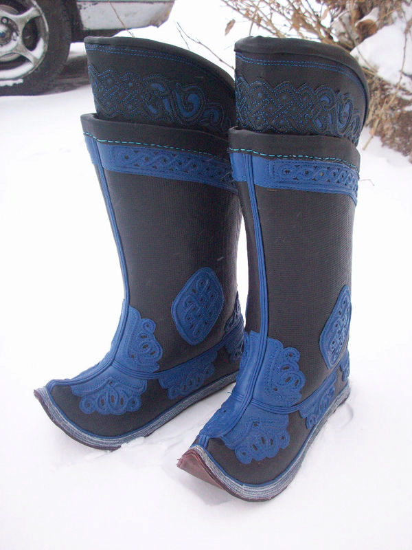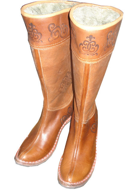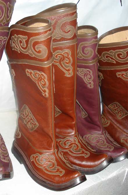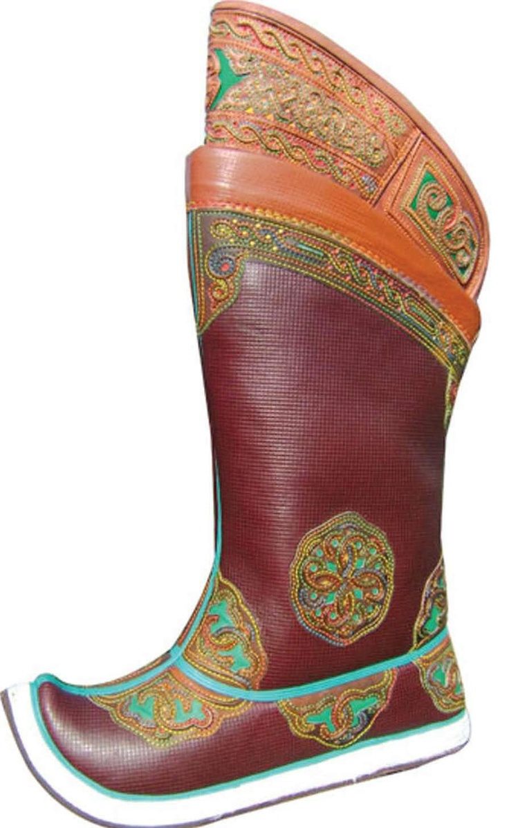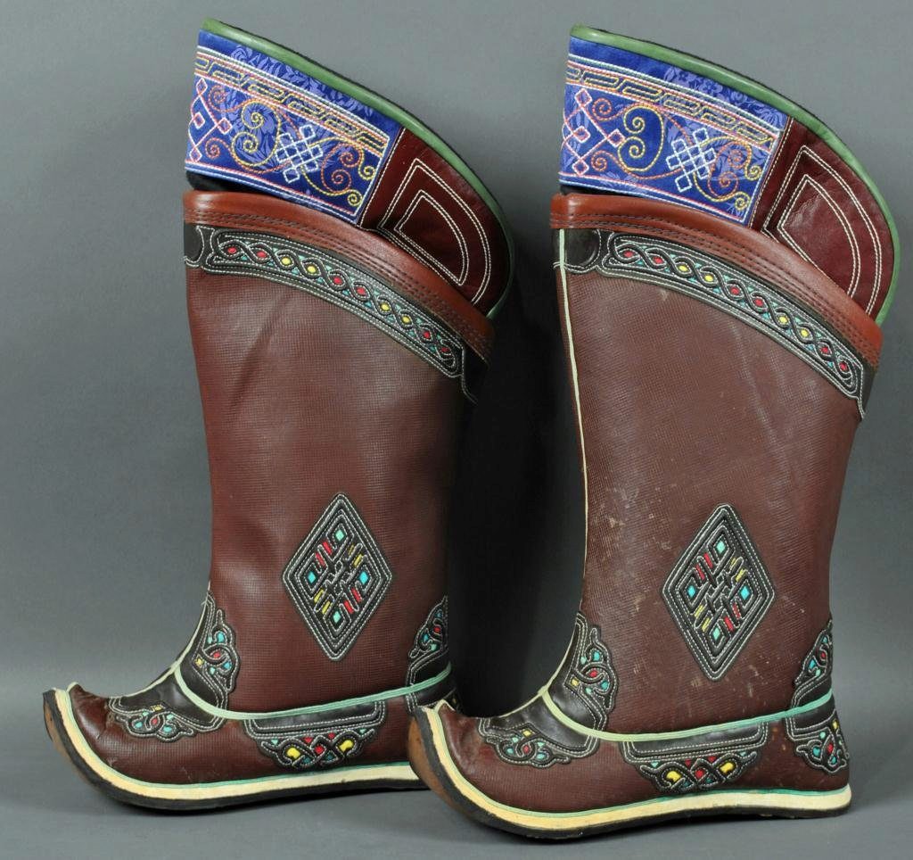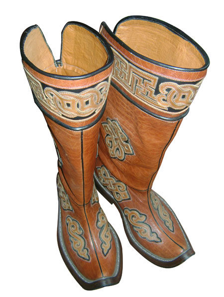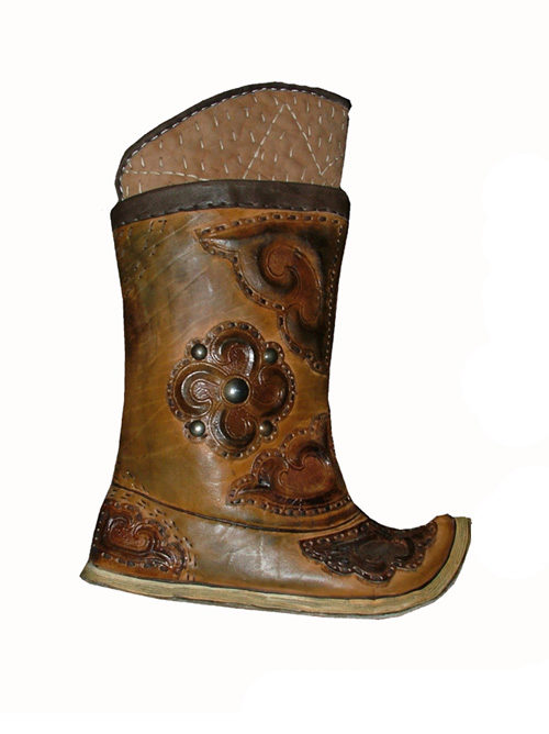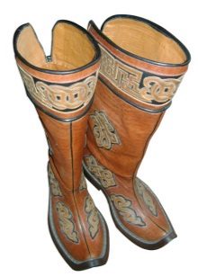 From time immemorial, the Mongols were known for being excellent riders who had excellent animal handling skills. For riding was necessary appropriate shoes - with a high shaft (reaching the knee), a raised pointed top, with a heel, made of durable material.