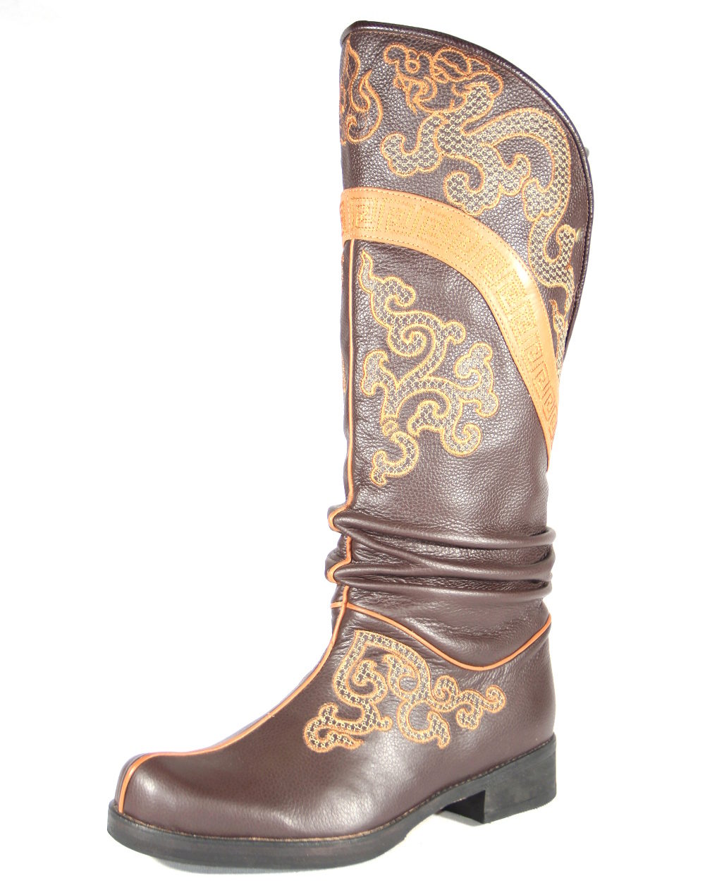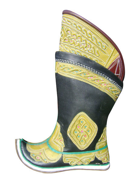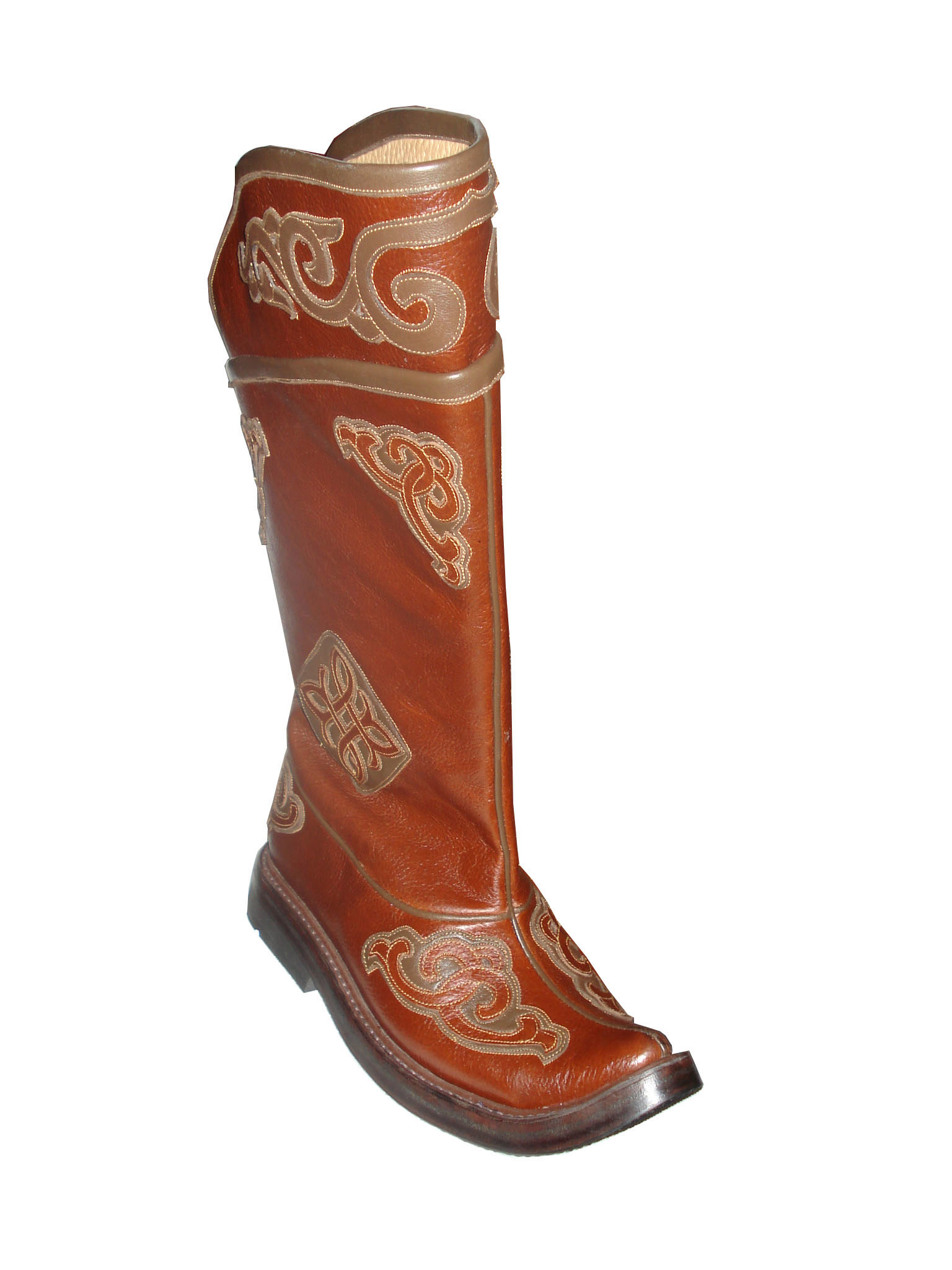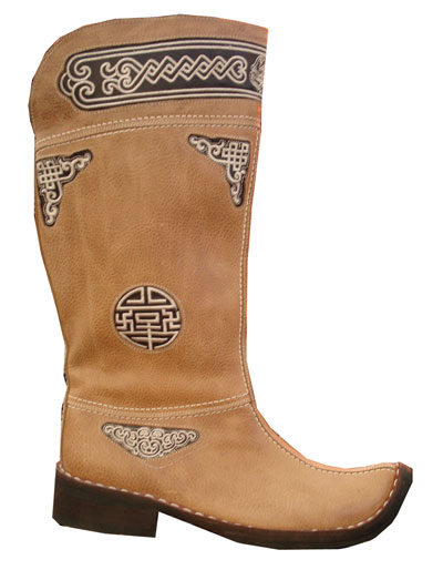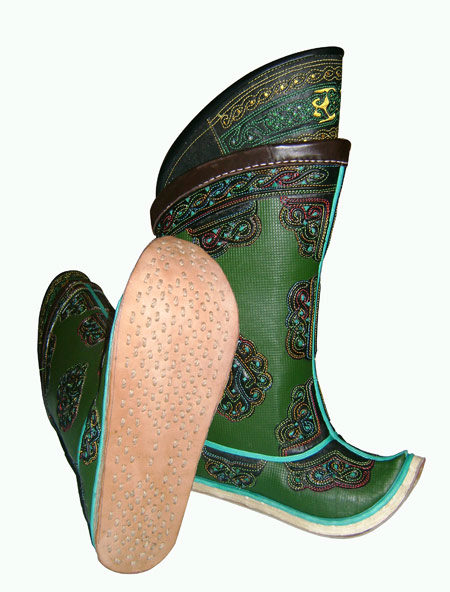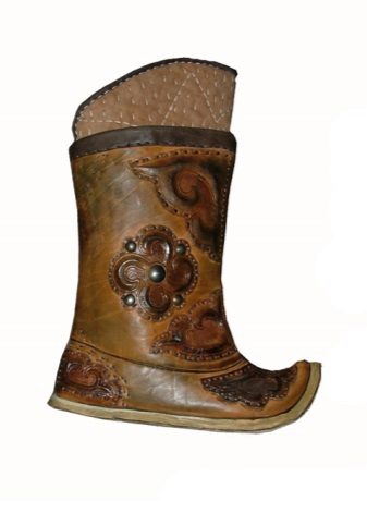 From time immemorial, the Mongols were known for being excellent riders who had excellent animal handling skills. For riding was necessary appropriate shoes - with a high shaft (reaching the knee), a raised pointed top, with a heel, made of durable material.