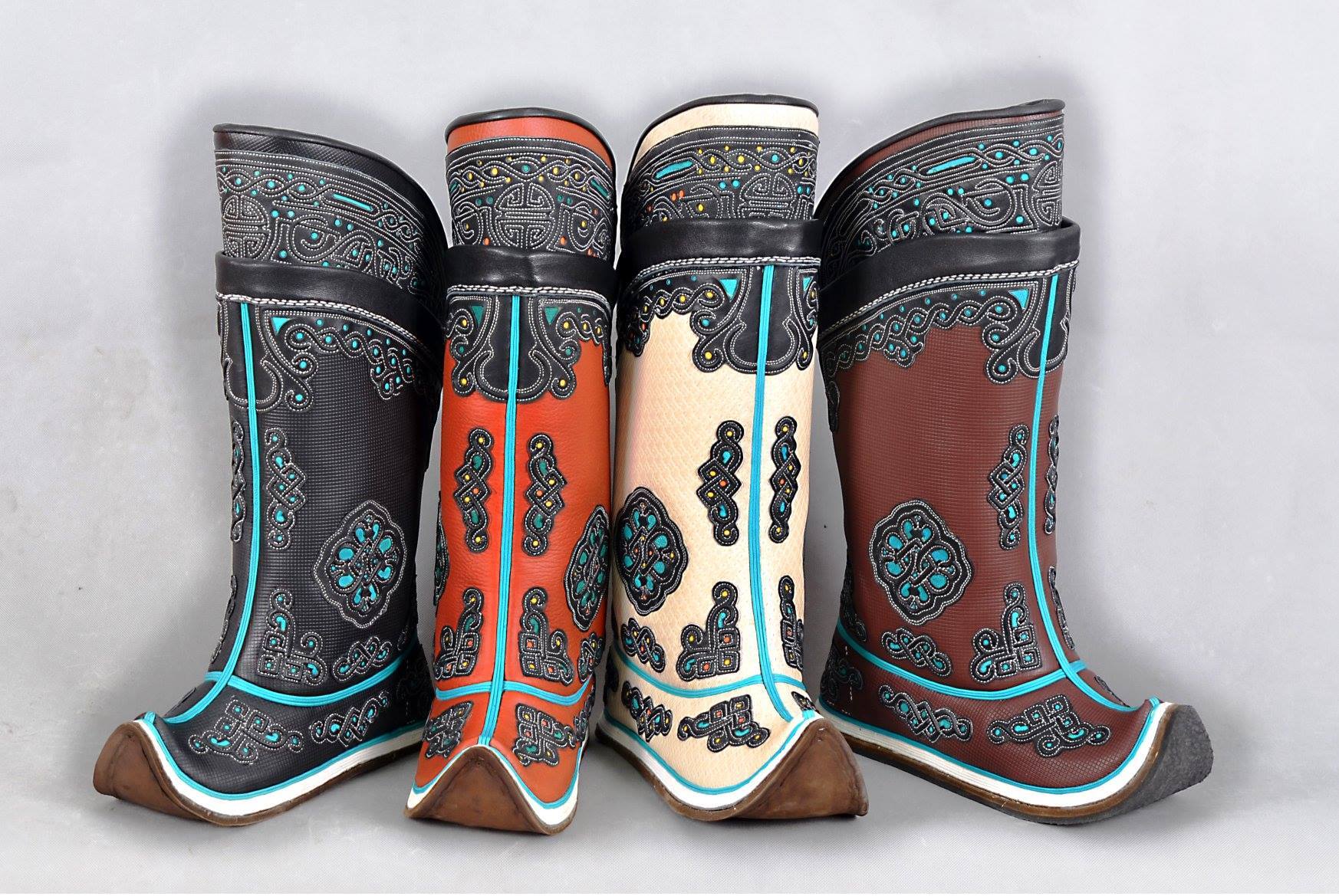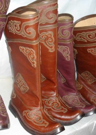 The color range of Mongolian boots is not very diverse. Traditionally, it is black, all sorts of shades of brown. Less common are gray, burgundy, green models.