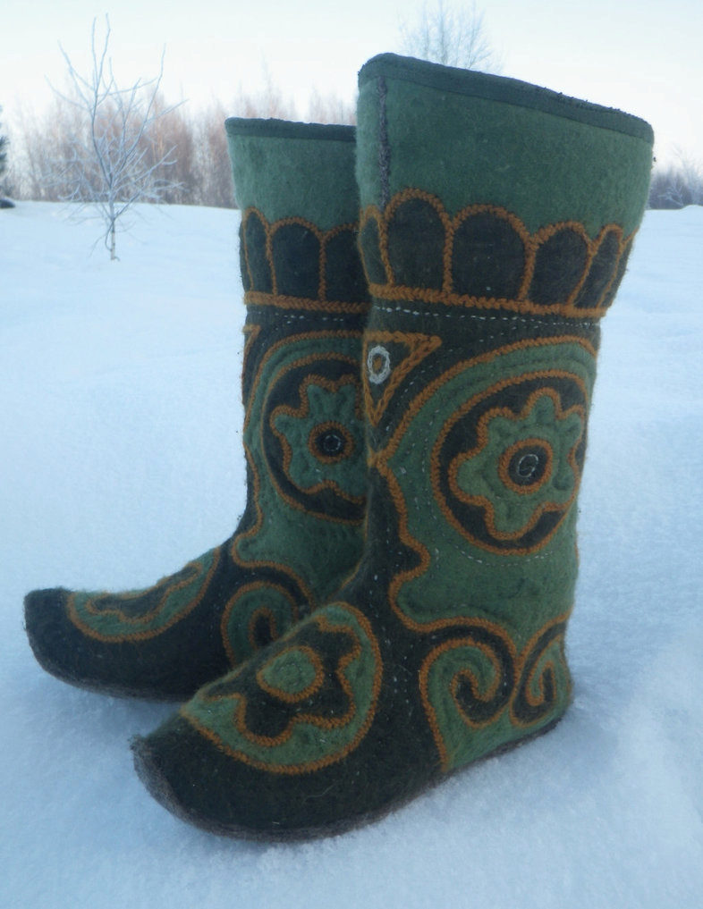Modern Mongolian boots are somewhat reminiscent of cowboy. But nevertheless, in general, they retained their original design (in particular, the original sock, high tops), colors and comfort. The felt sole further stimulates the feet and provides a light massage, which contributes to good blood circulation.