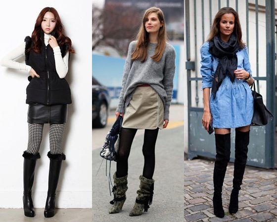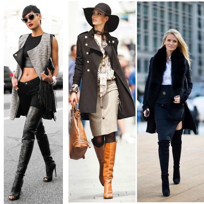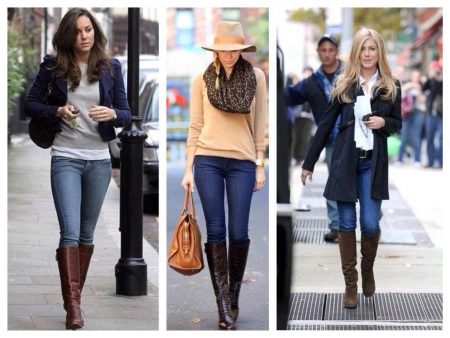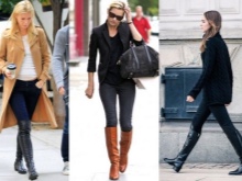 Boots, stockings and boots, boots with heels look stylish with leggings, jeggings, mini skirts.