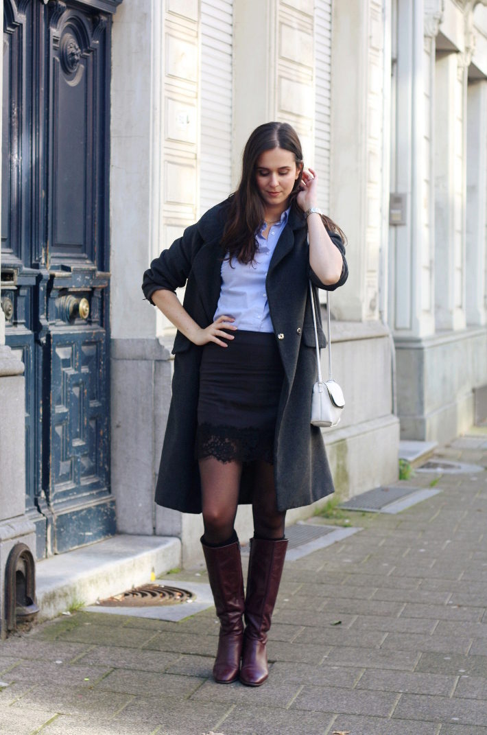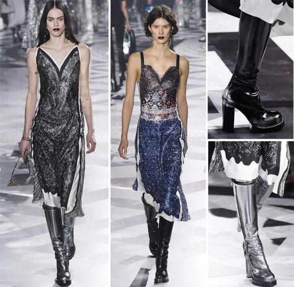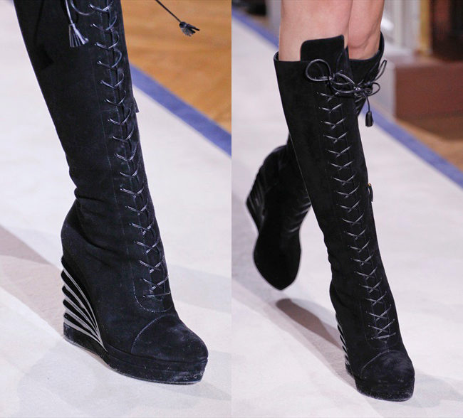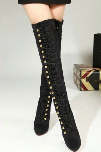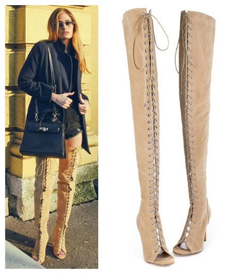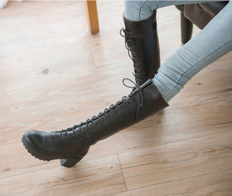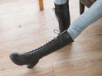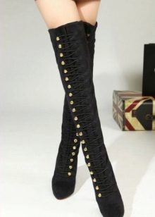High heeled boots with lacing can be combined with mini skirts, leggings, shorts, short jackets and puffs.
