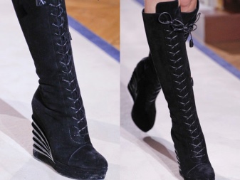 Do not lose their relevance boots with heels with a platform or wedge. Visually allow you to add height, make slimmer silhouette. In addition, the boots on the platform or wedge allow you to protect the top of the boot from moisture and snow.