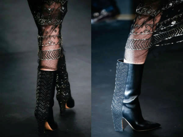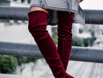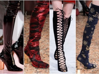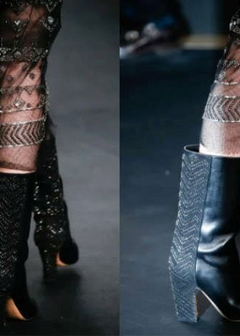 Textiles are also actively used in the manufacture of boots with heels - velvet, velor boots, and even lace, silk, etc. Stocking boots are increasingly found from various textiles, with textured patterns and patterns.