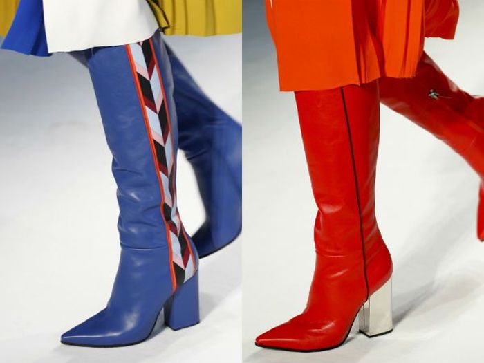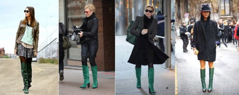 A bright and unique image can be created with the help of boots with heels of rich colors: lime, turquoise, yellow, orange, green, blue.