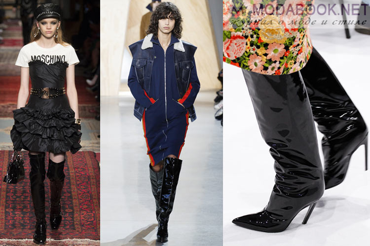 Varnished boots with heels are experiencing a new wave of popularity and will be an excellent option for women who love shine, nobility and conciseness, combined in this type of skin.