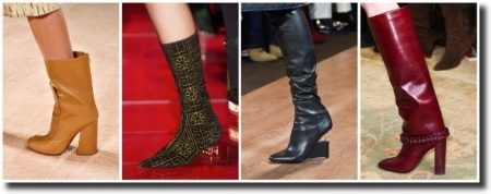 Among the models are still the current classic versions of women's boots with heels. The height and shape of the heel may vary. Popular models of boots on a medium stable heel, with skin-tight upper, oval or round toe.