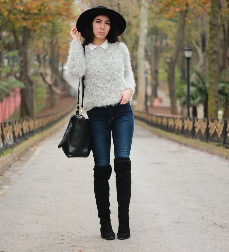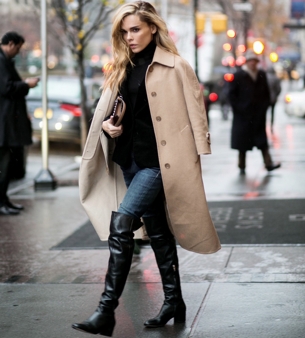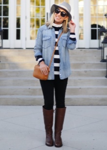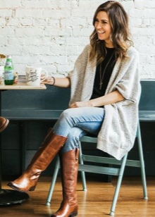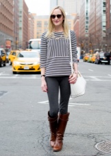 It is quite simple to pick up outerwear for boots, because bold leather jackets, classic coats, raincoats, parks, down jackets, vests are equally well suited to them.