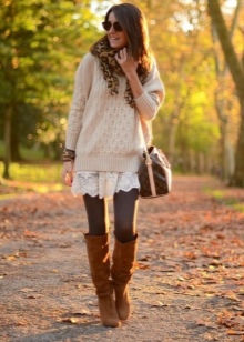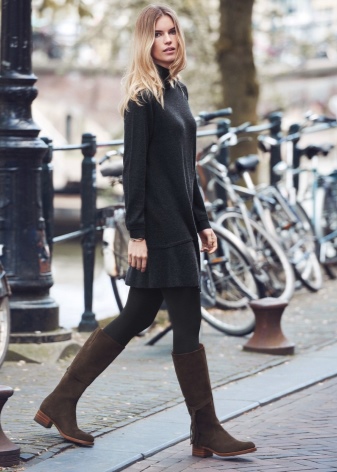 - The average height to the middle of the leg, as, for example, in Cossack boots, can visually shorten the legs of low girls, but it is combined with almost any clothing.