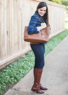 If the boots are lacquered, then there should not be other varnish items in the wardrobe, especially with accessories and bags. In addition, restrictions are imposed on them if the shoes are pronounced with the help of decor. The rest of the clothes and accessories in this case should be a modest addition, and not interrupt the attention to themselves.