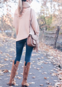 - High models with thick heels and boots look the most colorful, only they will fit only long-legged and will not tolerate competition with long clothes.