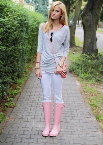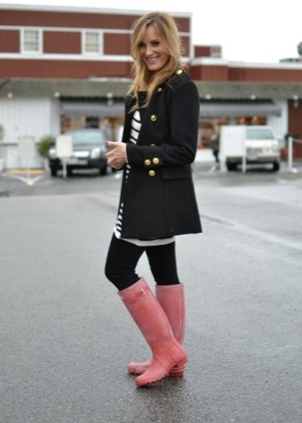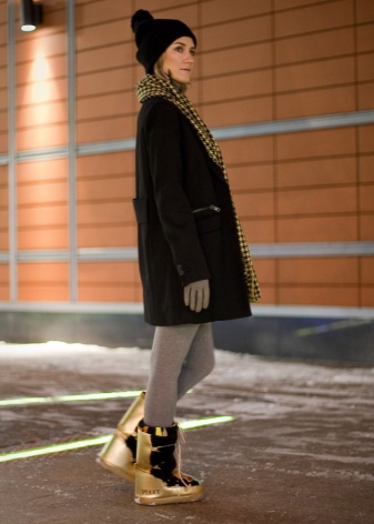 Rubber boots and "moon rovers" - inflated overall winter shoes can be attributed to low-heeled boots. Seasonal types of outerwear look most harmonious with them. A raincoat will approach the rubber boots, and a down jacket will approach the moon rovers.