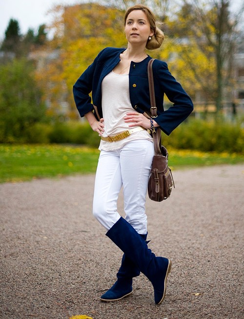 Low-heeled shoes sometimes have an unpleasant property, which is the visual shortening of the legs.To prevent this, you should pick up tight jeans, jeggings, leggings, tights to match the boots, especially when it comes to shoes that are not black.