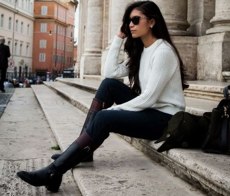 Boots with a small heel are a rather versatile type of footwear, because with them you can create images in several styles.