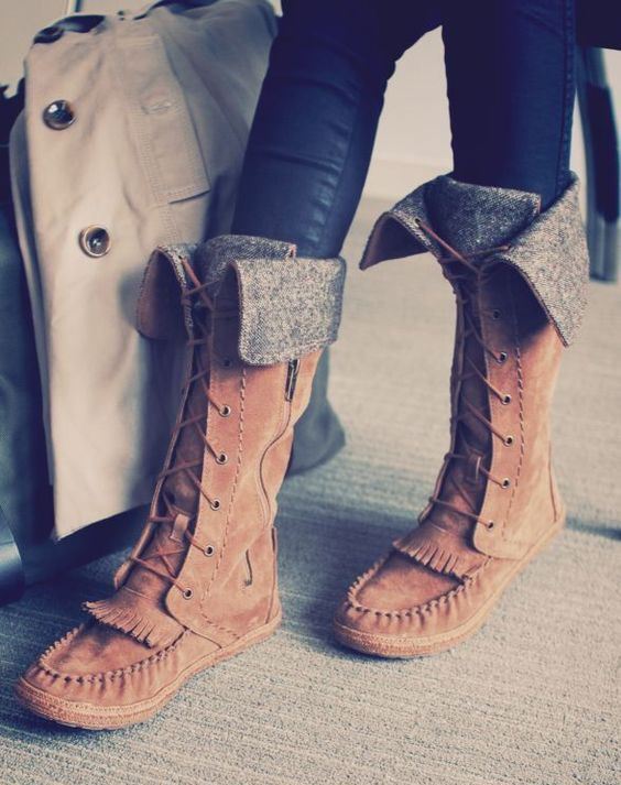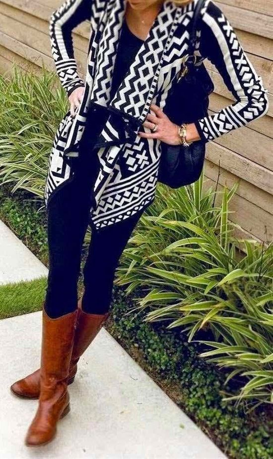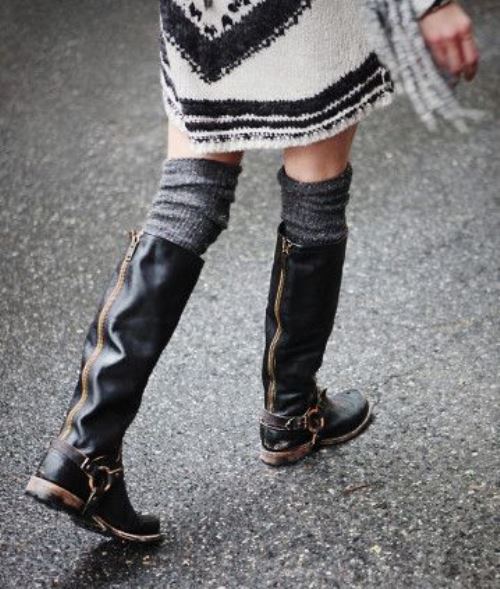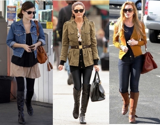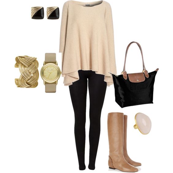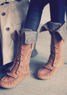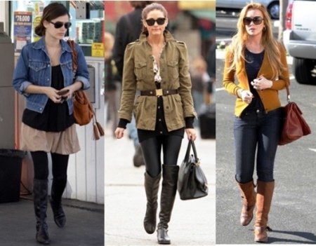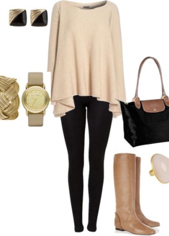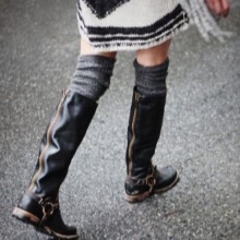 Leggings in combination with boots look very impressive and feminine. High boots or boots and black leggings emphasize the beautiful ladies' legs and visually make them longer. It is worth remembering that such a combination will suit the owners of a slim figure. Full girls better to turn to the classic combination of shoes with jeans or skirts of medium length.