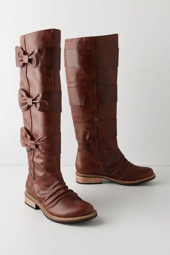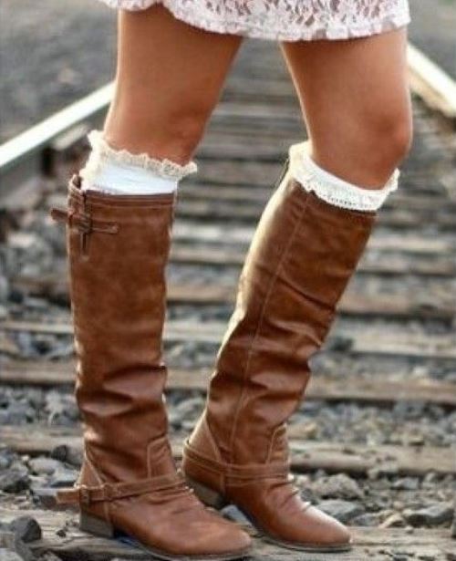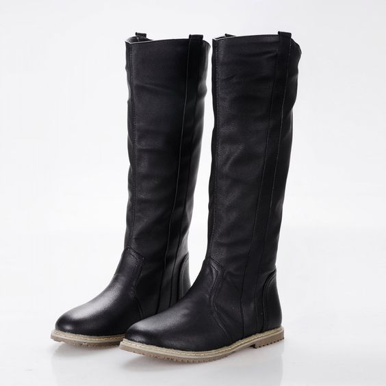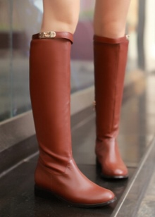 High boots on a flat sole sit perfectly on the ladies leg. Such footwear will become the fine decision for many daily or business dresses. In winter, these models will be the best solution for shortened outerwear.