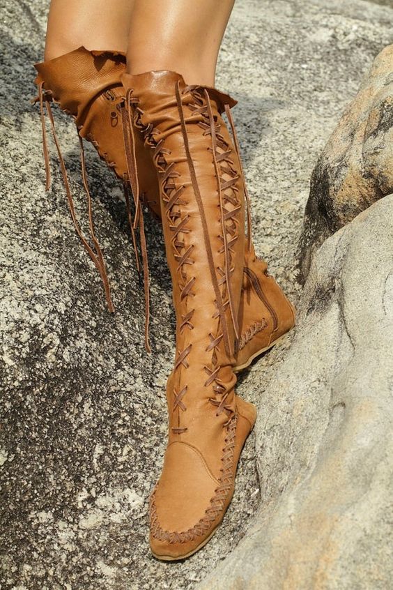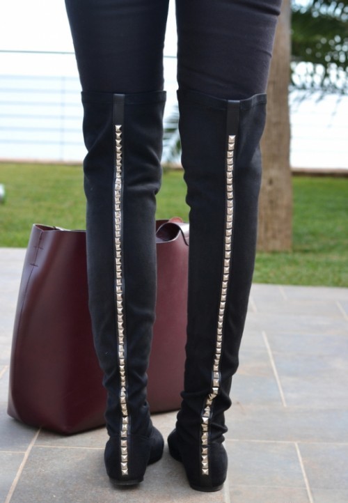 - such high shoes (can reach mid-thighs) sit very tight and fit legs;
