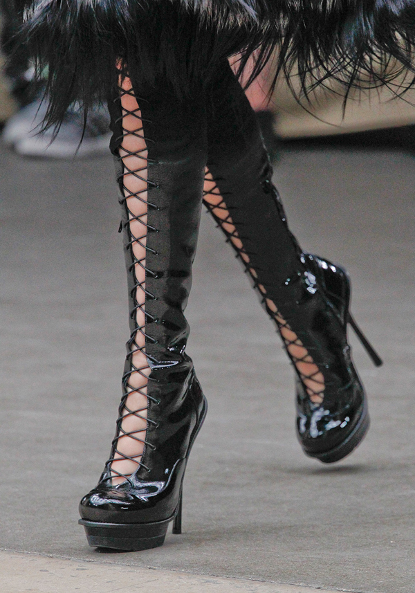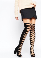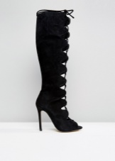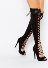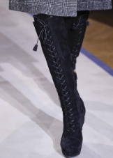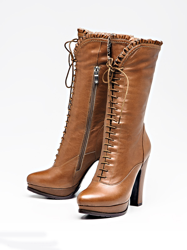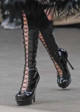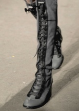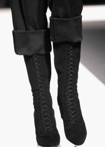 Individual boots deserve attention, because the height of their tops allows the most effective use of laces. Often they do not even carry a practical value, while remaining a decorative element. The most popular models with lacing in the front, but there is a lacing in the back or double. Laces can go for the entire length or be present only on a separate part.