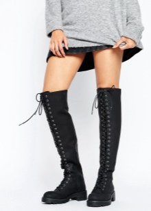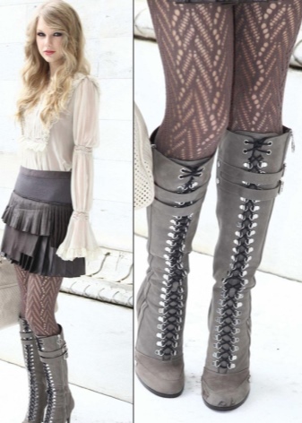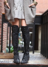 Lacing stirs the minds of everyone. She not only looks stylish, but also serves a practical purpose, keeping shoes on the foot. Lace-up boots look spectacular, and the higher the boots, the more impressive they are. Their story takes its origins from berets, shoes for soldiers and hunters, which provided maximum protection. In the middle of the twentieth century, the fashion industry turned its attention to such boots, making it a necessary acquisition for everyone.