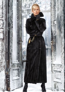 Products decorated with fur will make an ensemble with a fur coat or a coat with a fur trim perfectly. The classic style of boots with heels is simply created for a coat of an adjacent silhouette with a flared skirt. The most advantageous will look black models with outerwear of a similar shade with a golden or beige print. The cut of clothes is minimally simple and is decorated with a small fur trim on the collar.