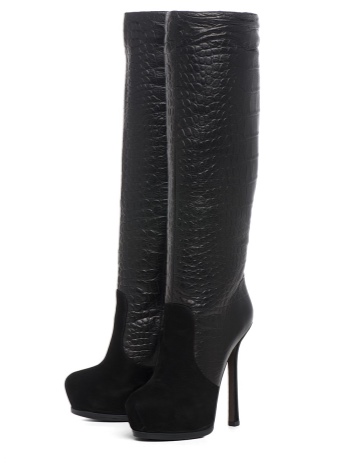 Catwalk options that attract the attention of fashionistas may have a transparent heel and a gold-plated ornament, merging with the color of the shaft. Fashion designers focus on the relevance of the combined models: winter boots can combine different texture of the skin, combine it with suede and textiles. Often, as inserts used reptile skin print. The style of models with a wide top is as simple as possible and has a different height of the platform.