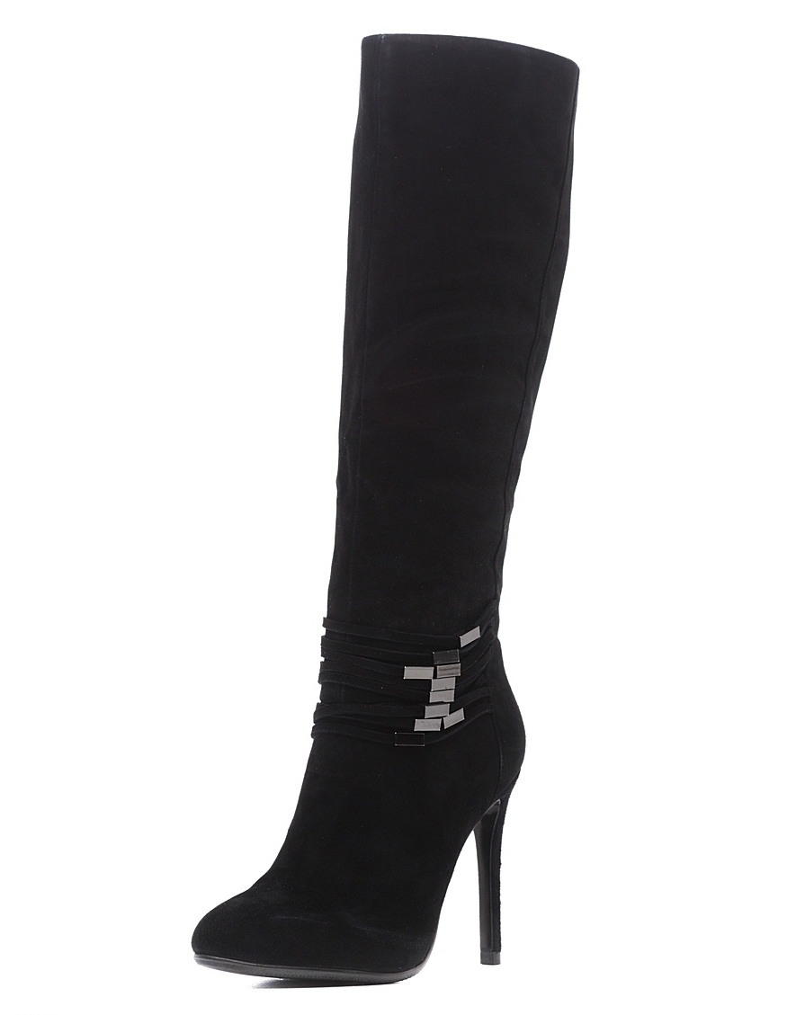 Boots with a low stud can complete the bow of a black flared skirt, pullover and cream-colored coat. Tall models look great with short coats, fur coats and jackets.