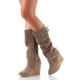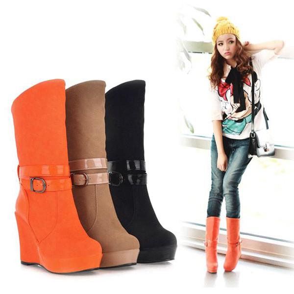 Suede wedge boots have a velvety surface than attract the attention of young ladies in the fashion world. Stylish shoes are more suitable for dress socks in dry weather. Such shoes look incredibly catchy, flirtatious, elegant and original. Especially if there are few decorative elements on it.