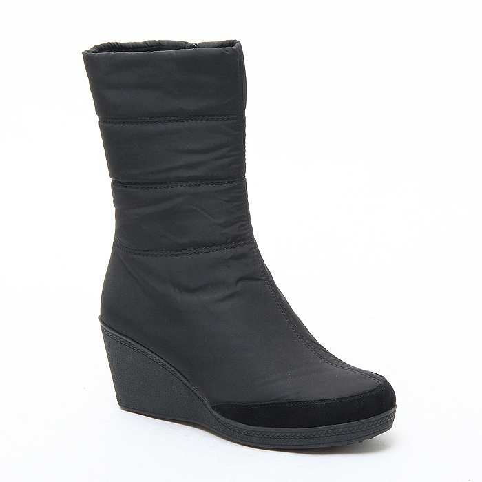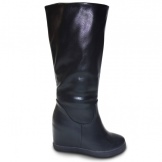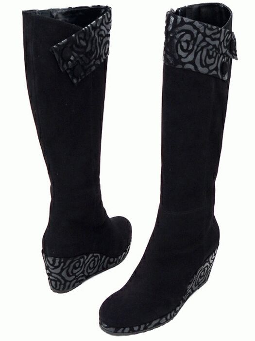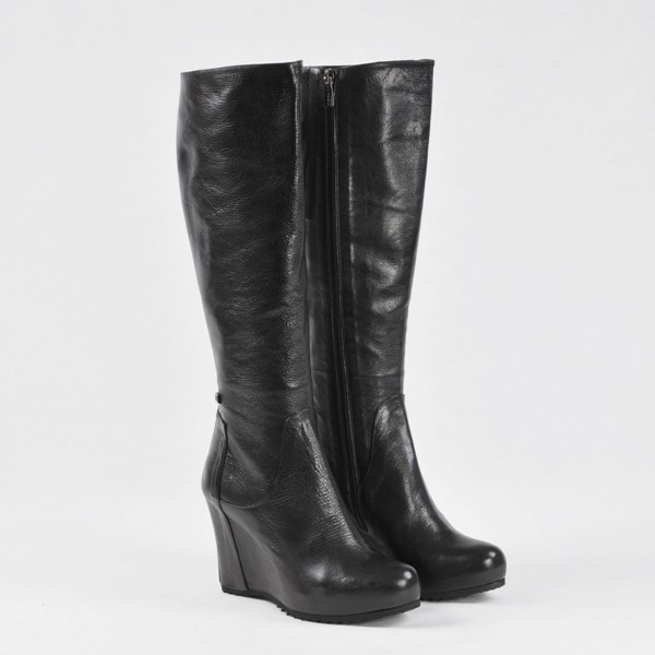 Black wedge boots, which have become the classic variants of seasonal shoes, are great for creating a casual look or for a business style dress. Black is the most practical color. It is not so visible dirt and stains. For black shoes it is easier to choose a wardrobe.