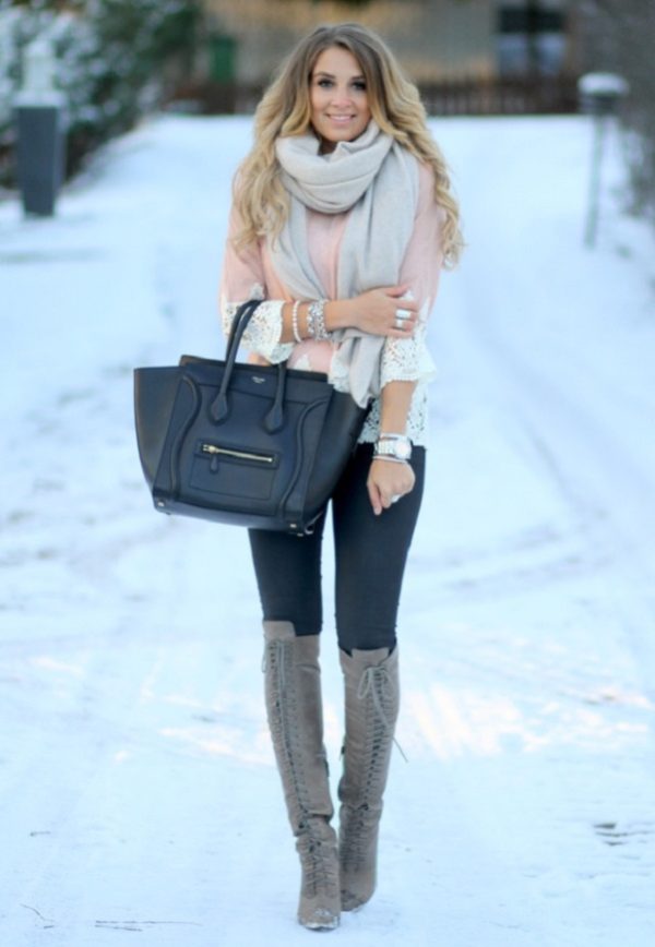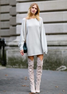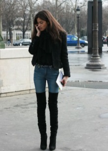 The most elegant shoe models are made of genuine leather. Pliable, pleasant to the touch, durable material is designed to be worn in any weather. Special qualities and durability of leather boots are reflected in the cost of products. But they will delight the fashionista with long socks and a magnificent appearance.