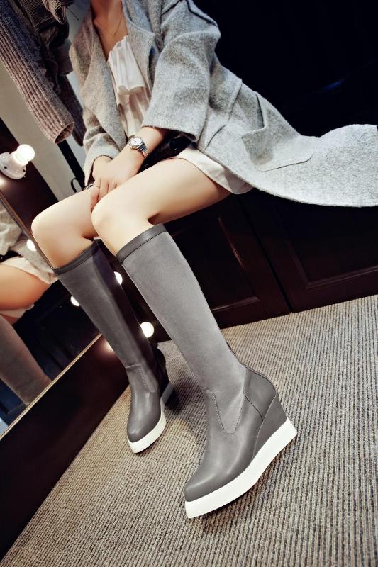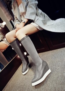 Gray wedge boots perfectly reflect business style in clothes. A business suit, strict skinny pants or a straight skirt will be a great complement to each other. To gray boots fit jackets or coats of bright colors - from purple to blue.