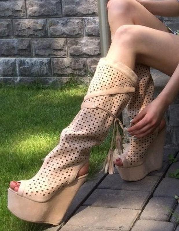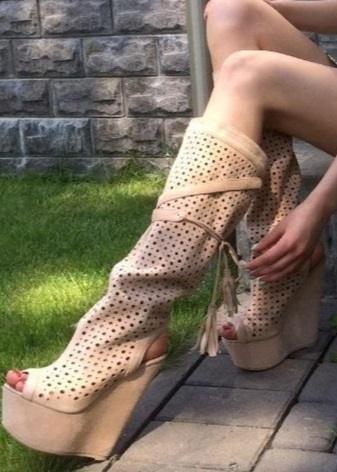 Summer versions of shoes in the form of wedge boots can rather be attributed to the original models to decorate the image. For example, summer wedge boots with expressive decor look attractive and feminine. We are talking about "breathing" boots with lace. Various straps, braid, tassels, metal inserts will decorate any model for summer.
