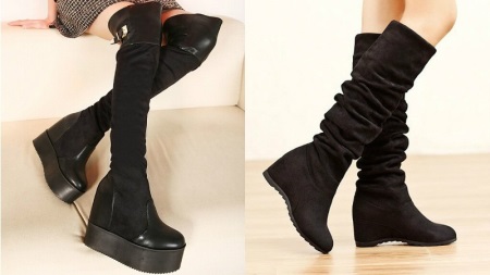 When choosing suitable wedge boots for seasonal socks, you should focus on the convenience of the shoes and its technical characteristics. A particular type of tanket creates the illusion of its absence or visually emphasizes the format of the sole.