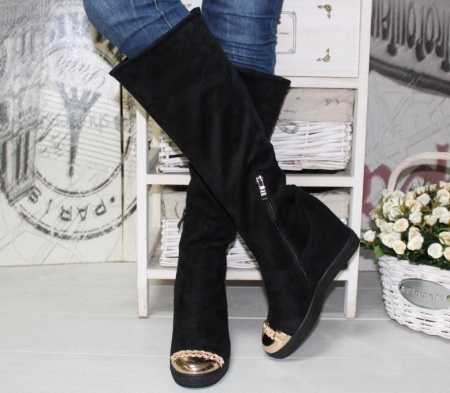 The choice of the length of the boots depends not only on the growth of the woman of fashion, but also on the features of the figure. Short legs are usually “lengthened” with high-heeled boots. The wedge is not for everyone, but it has a more universal character.