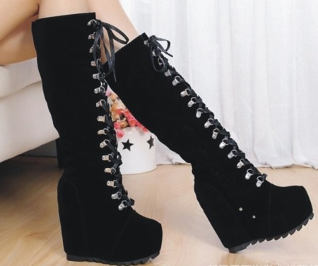 Various decorative elements on the shoes attract the attention of others. Wedge-high boots, intricately decorated with large stitching, bright prints, fringe, fur or lacing, with metal inserts or gold toe make these shoes unique and popular in the fashion world.
