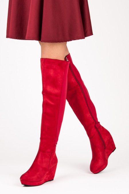 Burgundy wedge boots look bright and extravagant on young fashionable women. Shoes can be combined with clothes of carrot or brown color, lilac tones.
